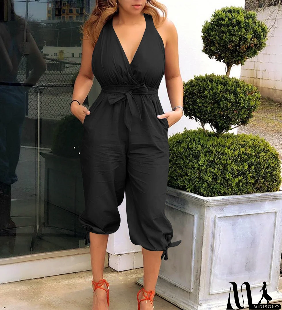 MidiSono - Women'S Fashion Casual Open Back V-Neck Jumpsuit