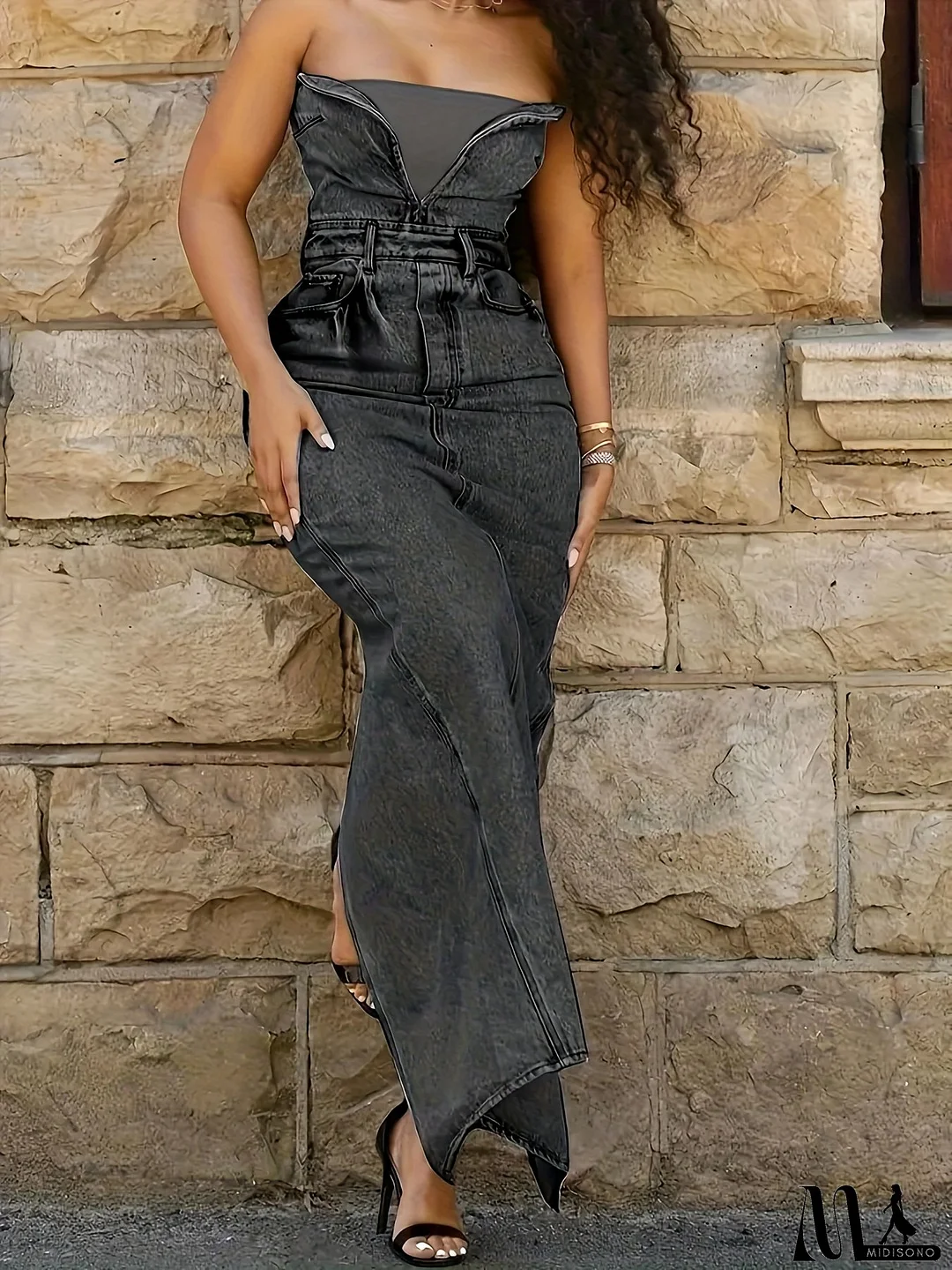 Women'S High Slit Denim Midi Skirt - Sleeveless Front Button Closure, Slim-Fit Pencil Skirt Silhouette with Wide-Leg Hem, Deep Blue Casual to Semi-Formal Outfits, All-Season Versatile Jeans Skirt for Women (No Belt Loops, Structured Non-Stretch Fabr