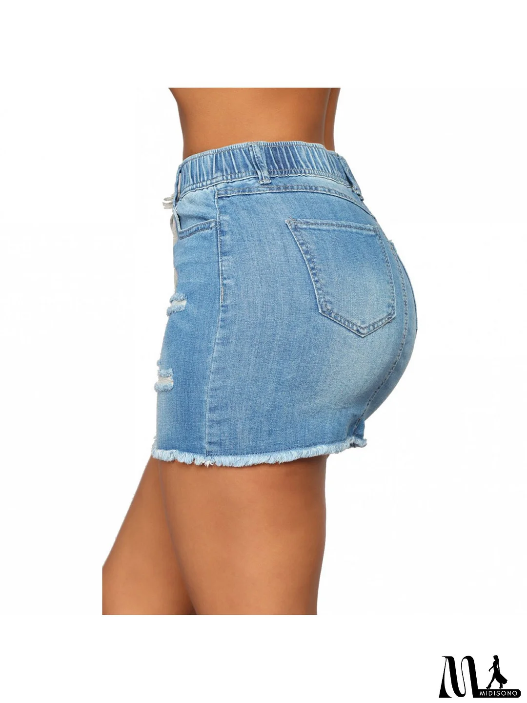 Women'S Vintage Distressed Denim Short Skirt - Light Wash Blue Jeans-like Texture, Structured Button-Fly Closure, Casual to Semi-Formal Outfits, Spring/Summer Short Skirt for Casual Attire (Solid Color, No Lining) - Direct Supply from Manufacturer - Retro Style with Frayed Hem & Button Detail, Light Blue Denim Fabric, Comfortable & Versatile for Casual Outings, Semi-Formal Events, Beach Trips, and Casual Attire - Women'S Fashion Denim Short Skirt, Jean Skirts for Women, Jean Shorts